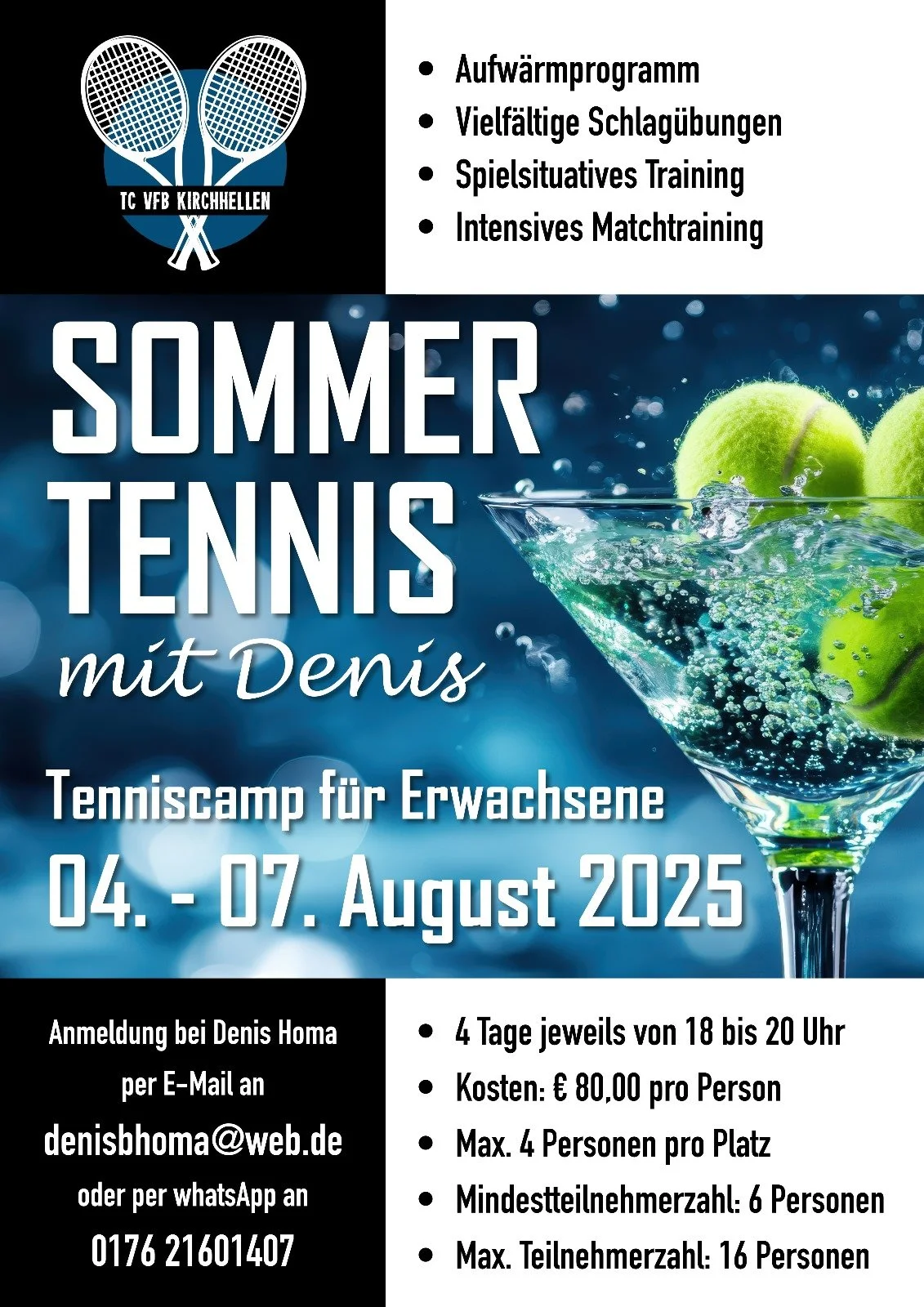 Der Verein bietet wieder ein Sommercamp an an dem Tennisbegeisterte ihr Spiel und ihre Technik in einem Intensiv-Training über mehrere Tage verbessern können.